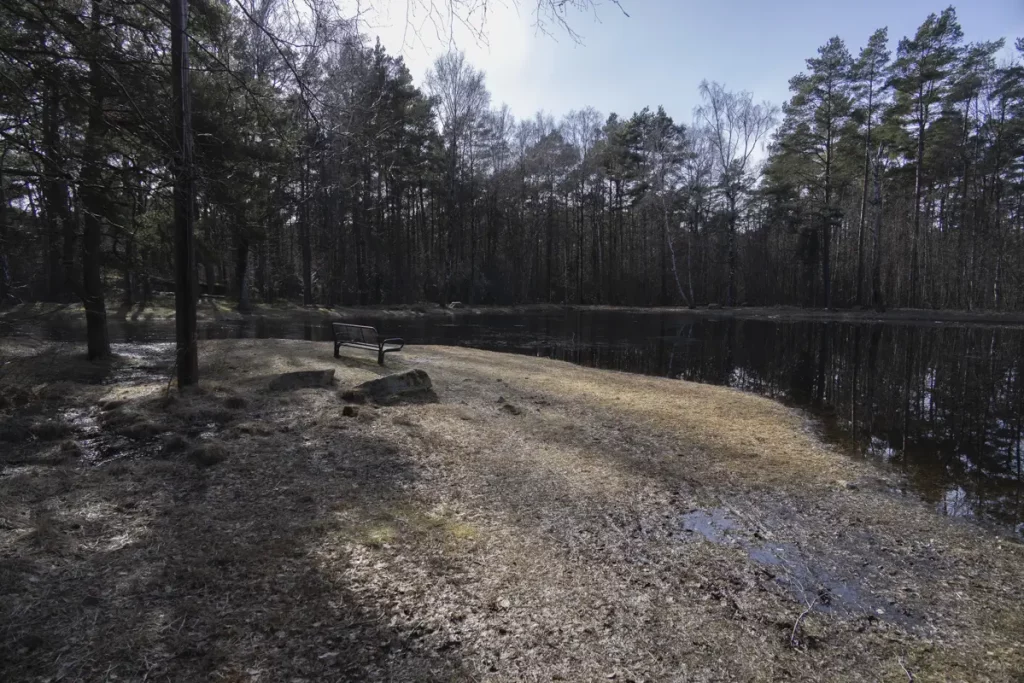 Idag 18 mars 2024 det var lite is på dammen (Vita Dammen) från söder
