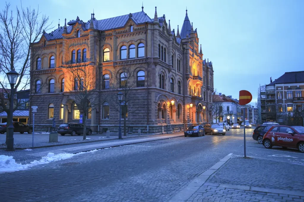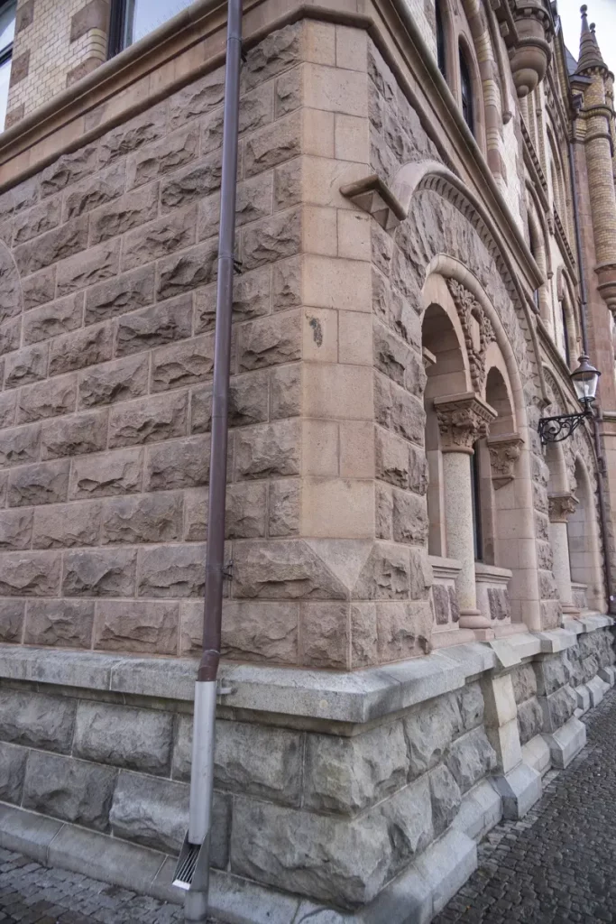 De svarta linjerna som finns på stenen, finns även på Sparbankens fasad