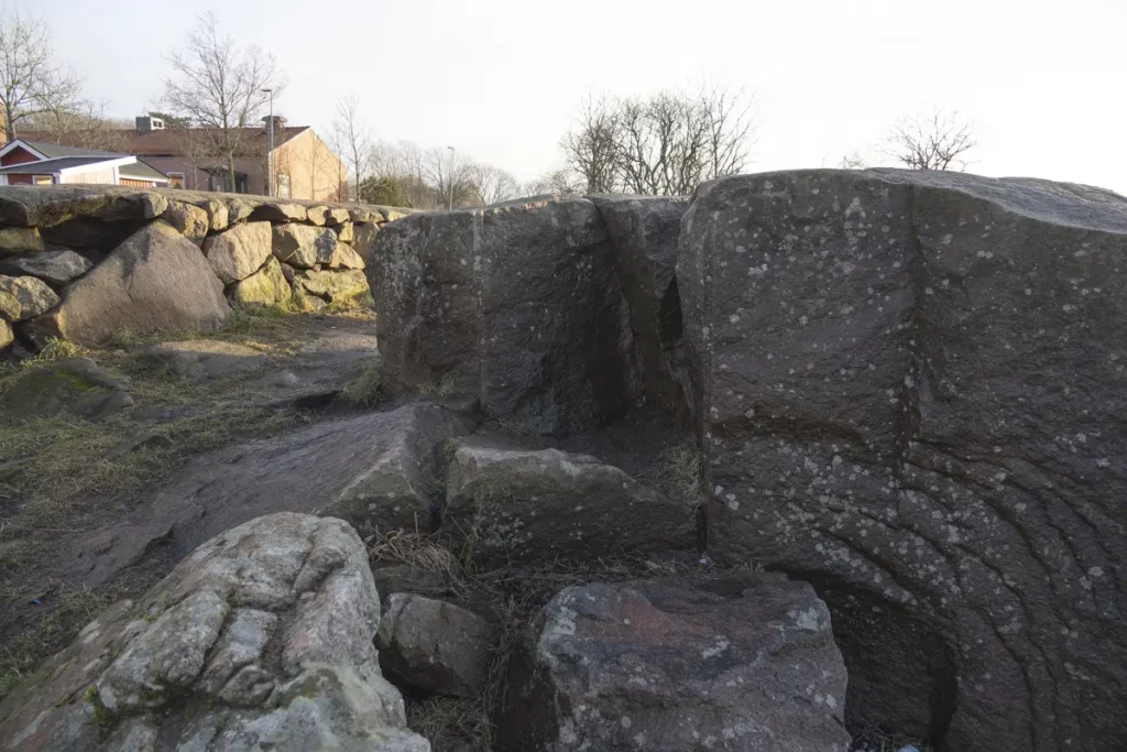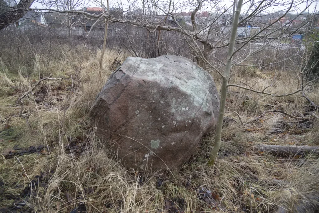 Enligt uppgift ska den ha varit på vid Danska vägen, mellan förskolan och transformatorn den gula tegelbyggnaden. Där finns endast en sten kvar som jag tycker har samma färg som Sparbanken. Det går inte att se här har funnits ett stenbrott, allt är igenfyllt. Några bilder från platsen. Danska vägen i bakgrunden mot söder.
