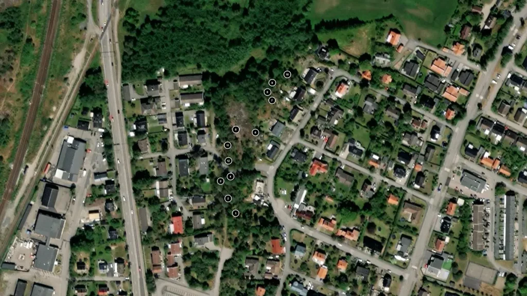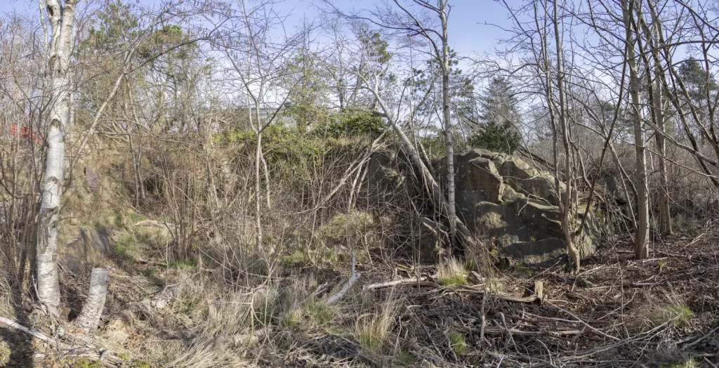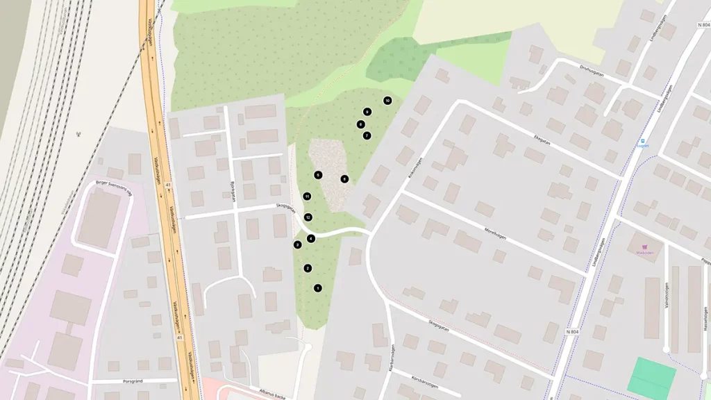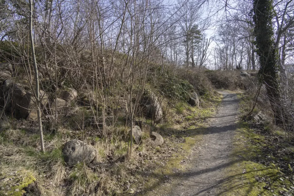 Strax norr Möbelaffären, men båda sidor om Skogsgatan ett mindre strövområde.