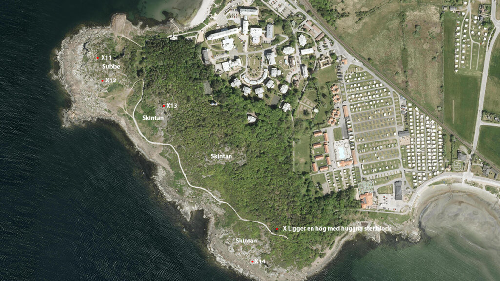X11. Staplade stenar i en klippskreva vid Subbe fyr
