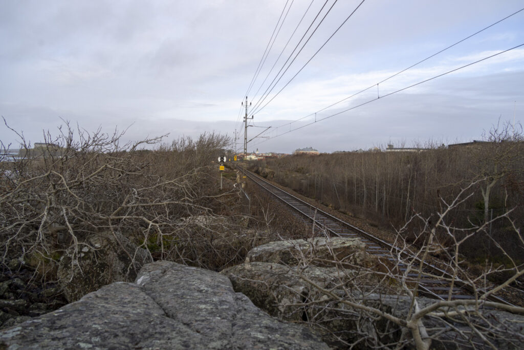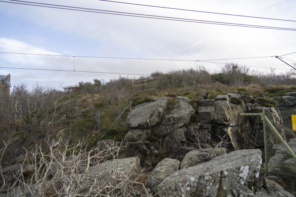 Strax väster utkiksplatsen Granitvägen Hästhagaberget finns ett stenbrott som säkert var byggt före nuvarande järnvägen här har säkert varit en övergång över berget. Om man tittar noga kan man se att här har man byggt en ramp för att lättare ta sig över berget (nuvarande järnvägen) till ett annat stenbrott som fanns här som heter Stockholmsbrottet. Detta var ganska stort. Som det ser ut nu så är det ganska svårt att se detta på grund av växtligheten. Kan ju även funnits ett stenbrott där nuvarande järnvägen finns. Som ska försvinna så småningom (fyllas igen).