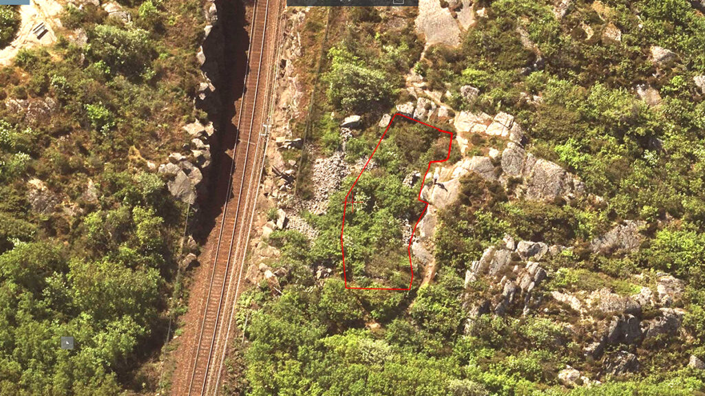 Den röda linjen visar stenbrottet som finns här. Tyvärr har kartan blivit fel, söder är uppåt.
