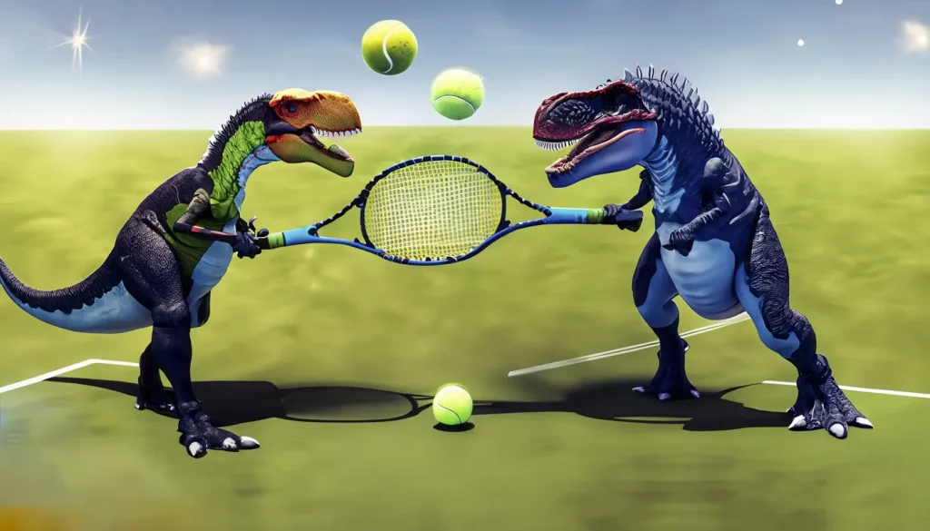 Firefly 2 dinosaurier som spelar tennis med planeter och har tennisrack. Så blev den.