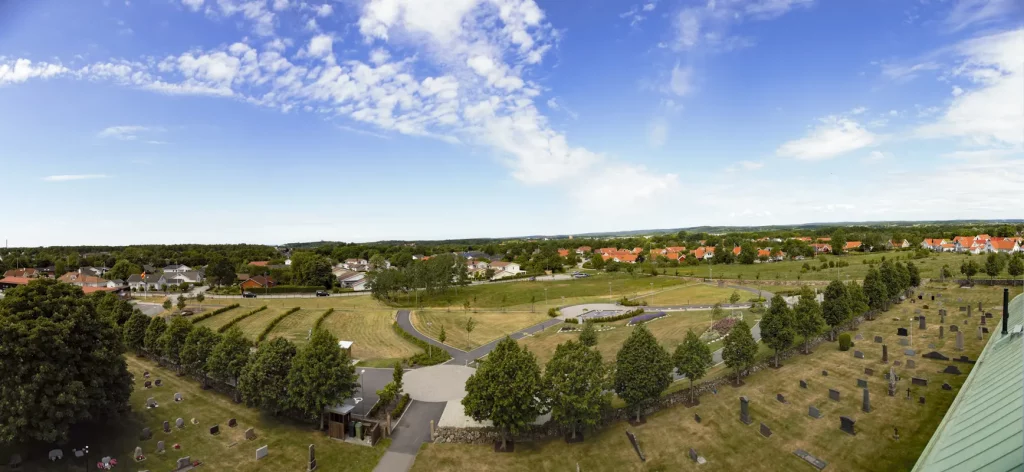 Finns väl kyrkogård där borta, eller var det en ruin?
