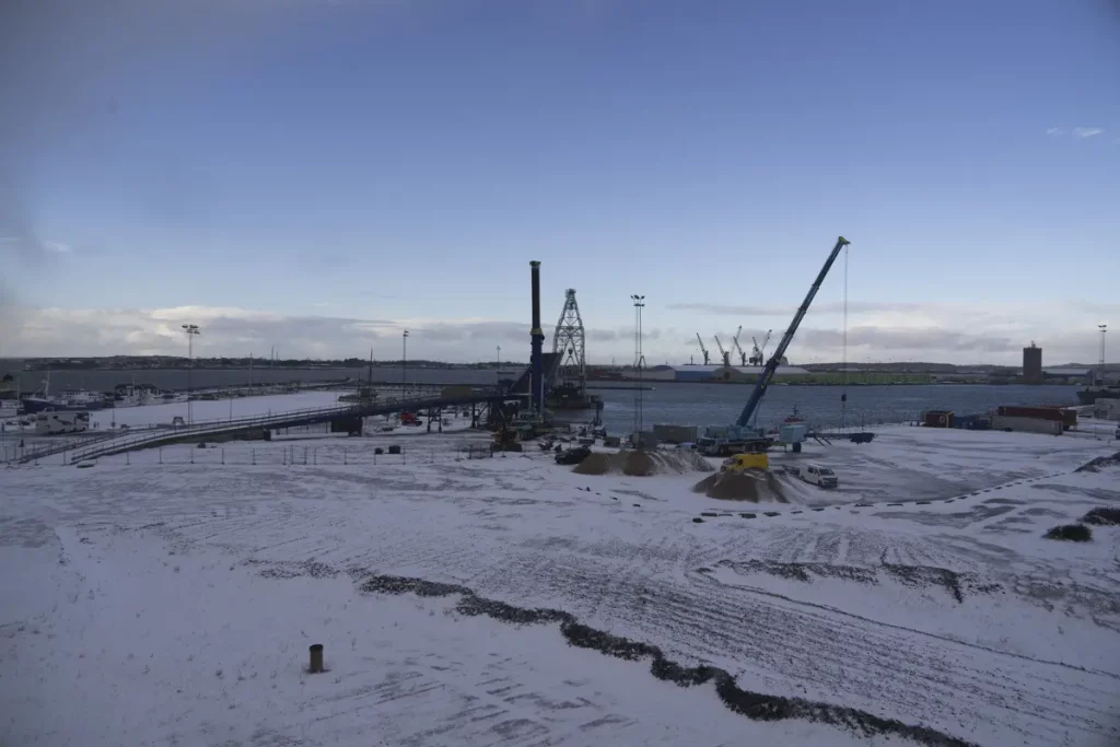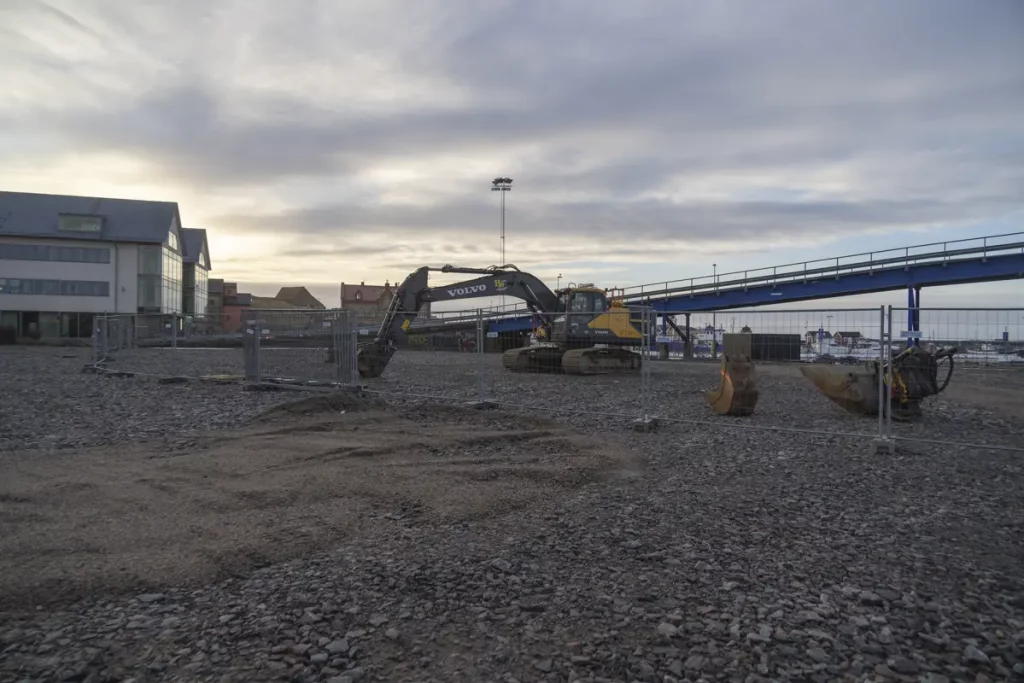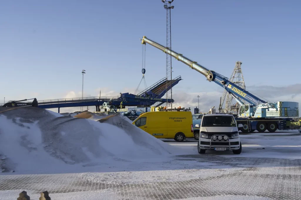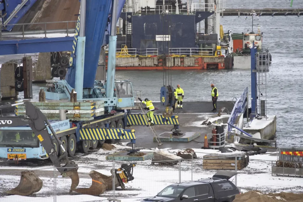 Lyftet är tydligen så tungt att den ena kranen fick förstärkas.