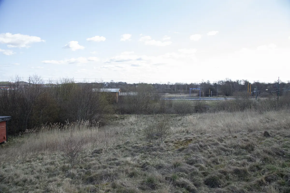 Vi tittar nu mot järnvägskorsningen Västkustvägen, röda huset till vänster var ett duvslag.