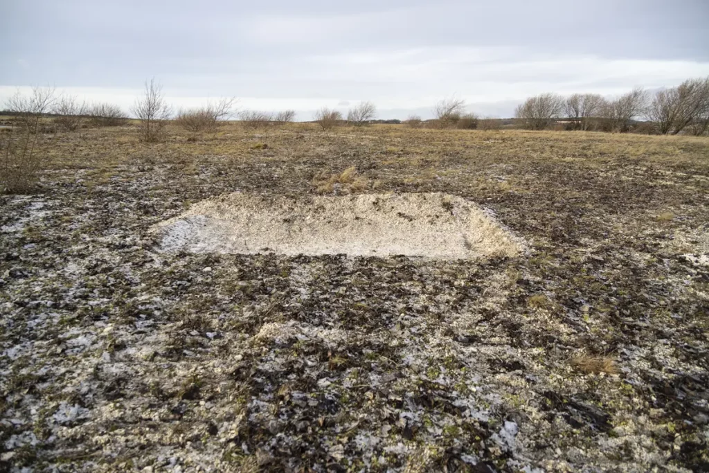 Såg att någon hade provgrävt 2023-dec. men det är lika mycket gips som innan, det försvinner nog aldrig. Kanske som radioaktivt halveringstid med 1000 år eller mer!