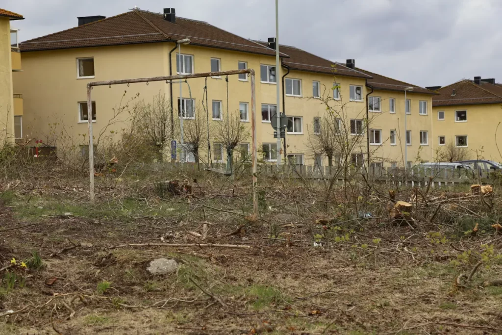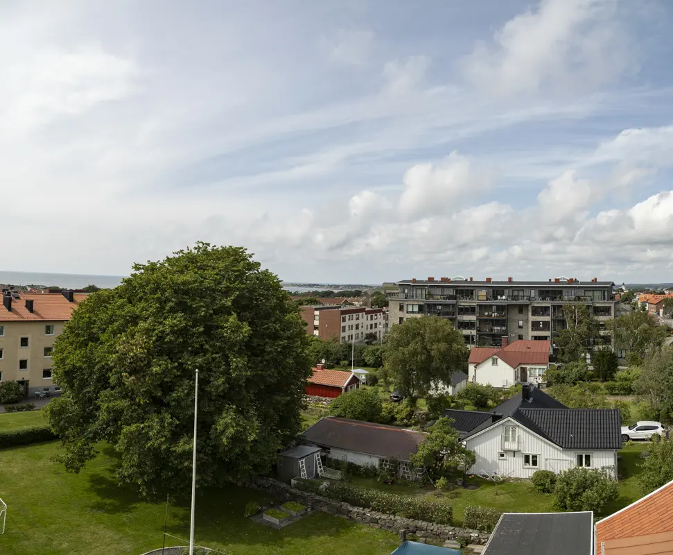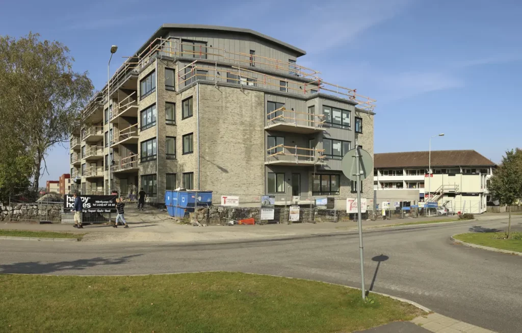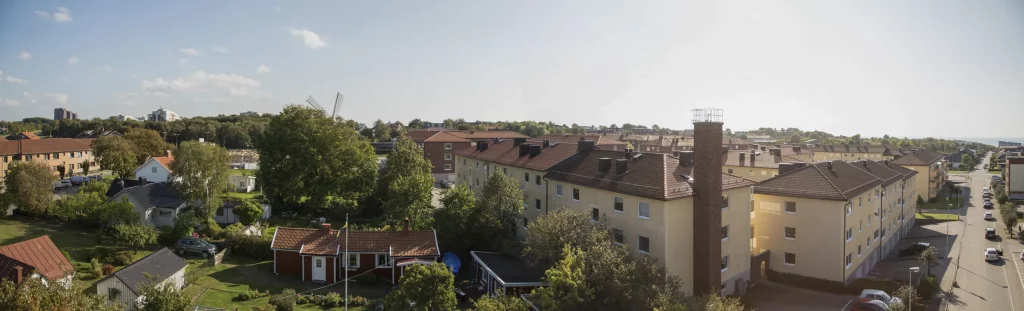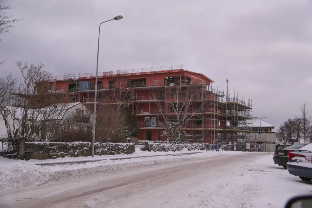 Vy mot söder, vi kan se att Södra vägen 50-52 håller på att byggas bortom kvarnen